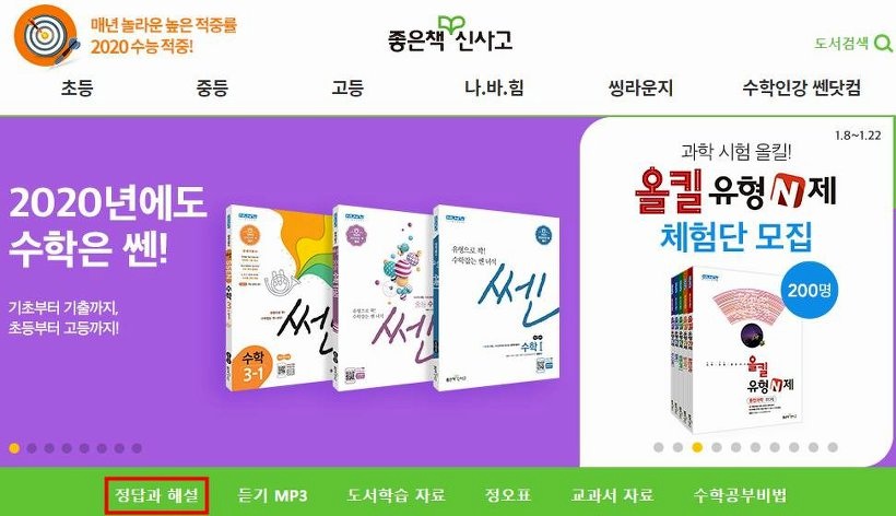 이 부분을 눌러 주시면 됩니다 된다고한다면 좋은책신사고에서 나오게 되는 참고서나 교과서 와 관련된 자료를 내려받아 볼 수 있는 화면에 나오게 되어질겁니다 이곳 보시면 정답과해설이라고 되어져있는 부분들이 있답니다.