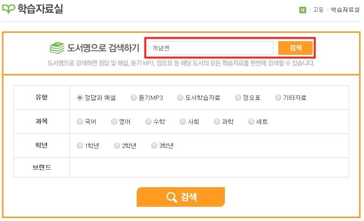 2번을 눌러 주시게 된다고한다면 자료를 검색 하기 위해서 이렇게도 서명으로 검색할수가 있는 부분들이 나오게되는데 오늘 다운 받으시고자하는 개념쎈이라고 입력을 해보시고 검색을 해 보세요.