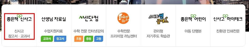 좋은책 신사고로 검색을 한다음에 정식홈URL로 이동을 하게 되어졌다면 중간에 이런 식으로 여러가지 패밀리 싸이트들이 나오게 되어져있기도 한데이것들중에서 좋은책신사고 참고서 교과서라고 되어 있어서 있는곳을 눌러 보세요.
